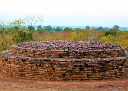 An ancient Buddhist monastic complex featuring meditation caves, inscriptions, and remnants of Ashokan-era history.