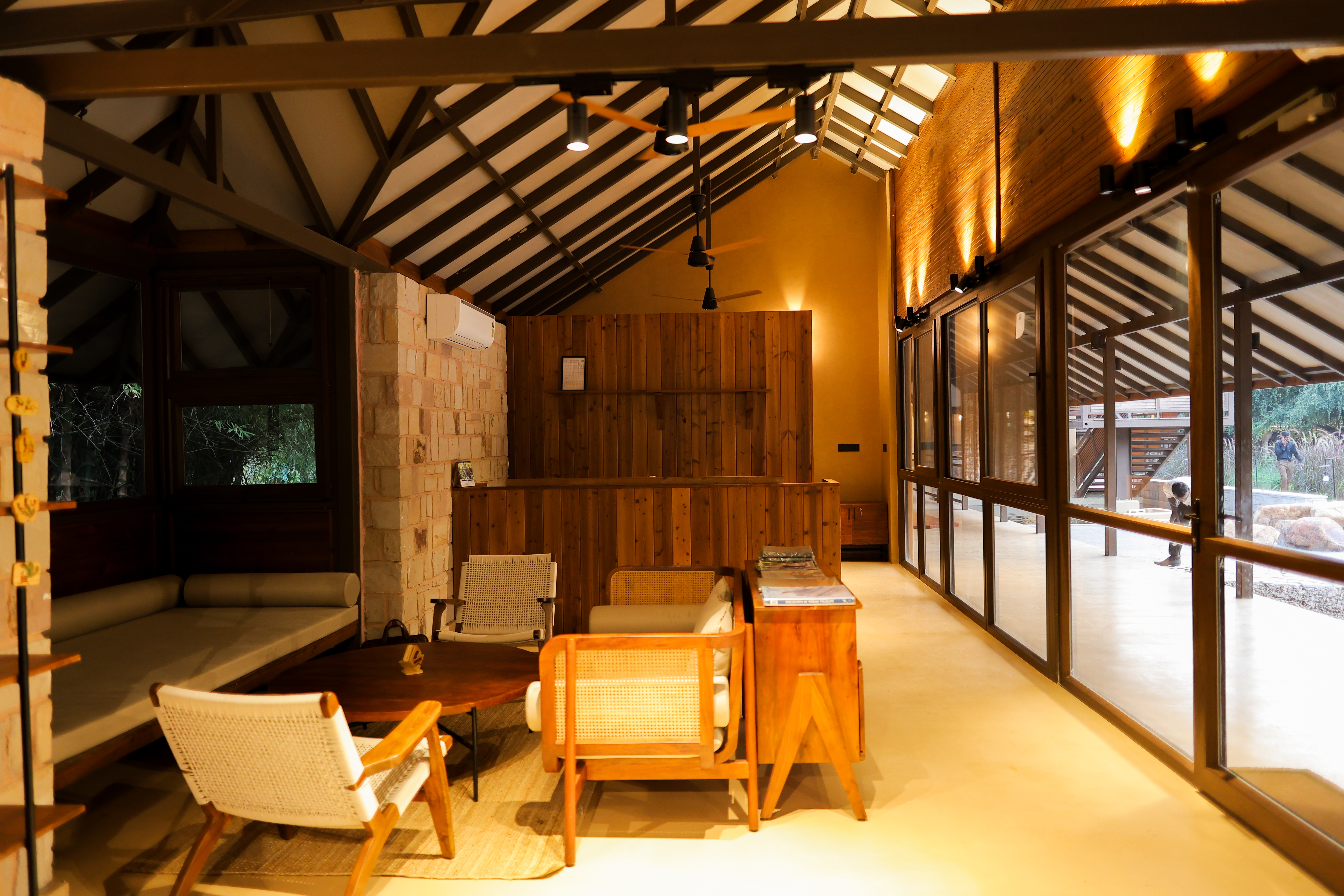 Enjoy comfort in the wild with our rustic mini-safari glamping tents. Featuring chic interiors, a private lawn sit-out, and ensuite bathrooms, these tents offer boutique-style luxury with the charm of camping—ideal for couples, families, or weekend travelers looking for a unique glamping stay near Ratapani.