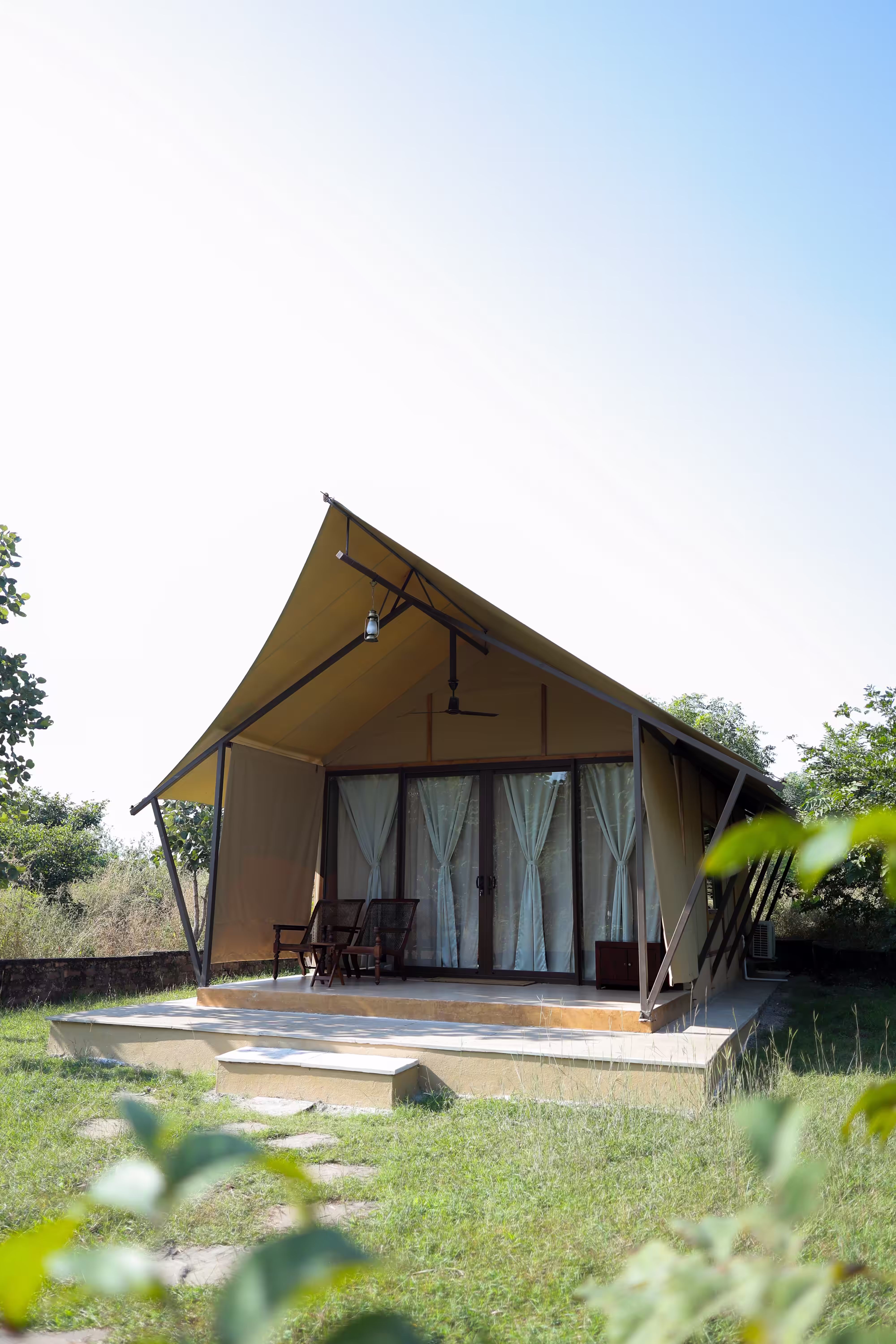 Step outside to your private lawn-side sit-out, perfect for slow mornings, evening tea, or peaceful moments surrounded by greenery. As a premier eco-lodge glamping near Bhopal, Madhuban brings together attentive hospitality and all modern conveniences — making this boutique tent stay in Ratapani ideal for couples, nature lovers, and weekend travelers searching for a stylish escape. Whether you're planning a romantic glamping near Bhopal or simply seeking a mindful retreat, our glamping tents near Bhopal offer the perfect blend of wilderness and comfort.